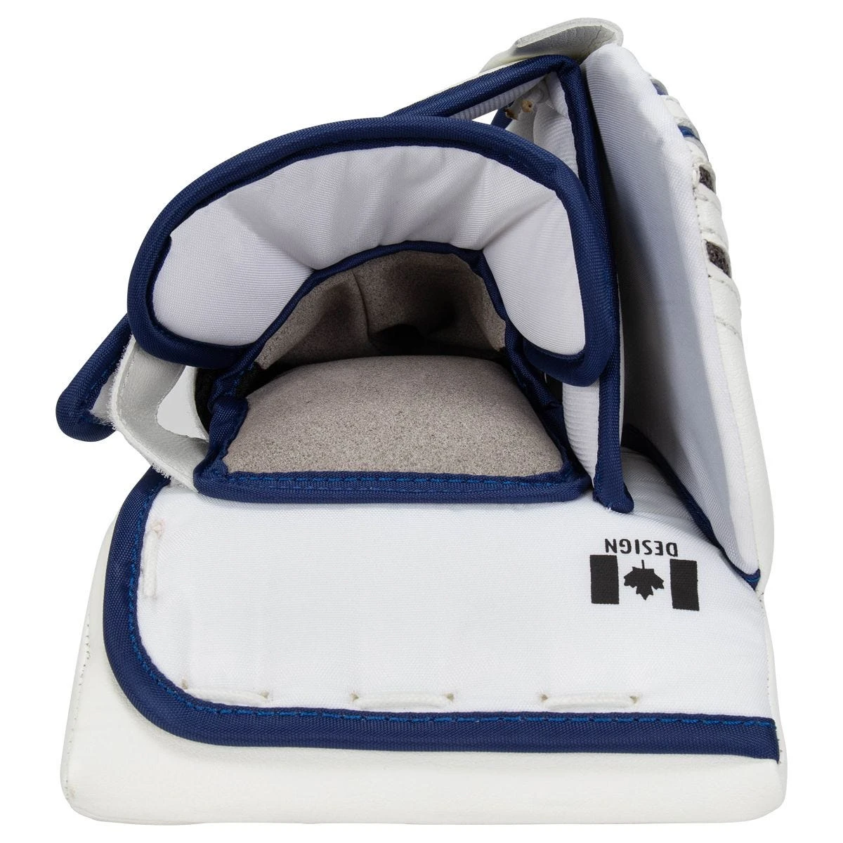 The G-Netik V has a large HD blocking board, and a beveled nose which not only helps the goalies in their main stance, but it helps the blocker seal well to the ice in paddle down and RVH technique. Helping with this large square design is a redesigned, ultra ridged internally laced sidewall. The thumb has a unique reinforced and shortened shape for improved control with the paddle along the ice.